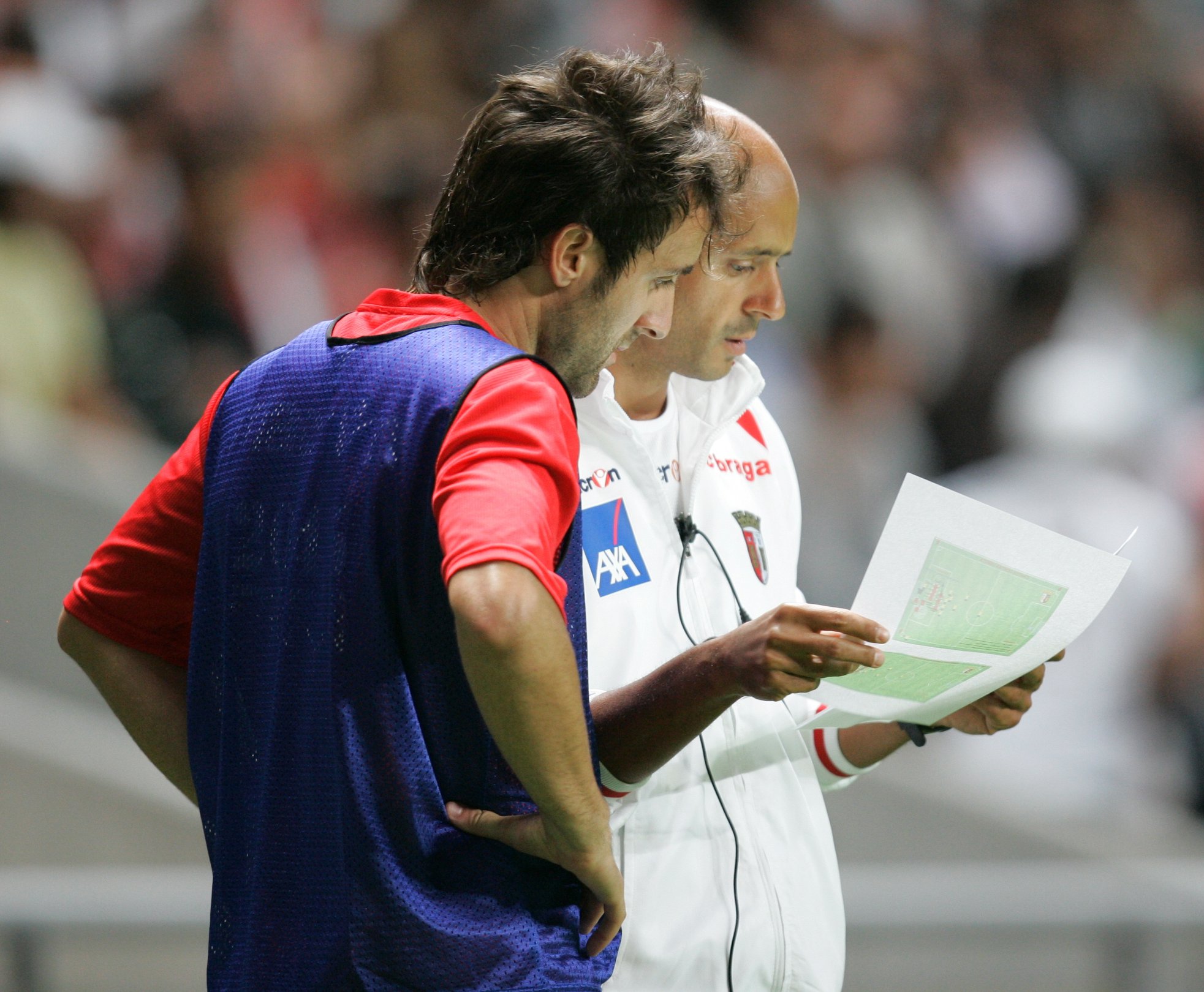 Giving instructions to Diogo Valente before entering a game - SC Braga